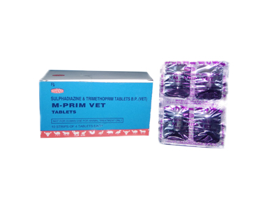 M-Prim Vet Each bolus Contains Sulphadiazine 1000mg. Trimethoprim 200mg. |